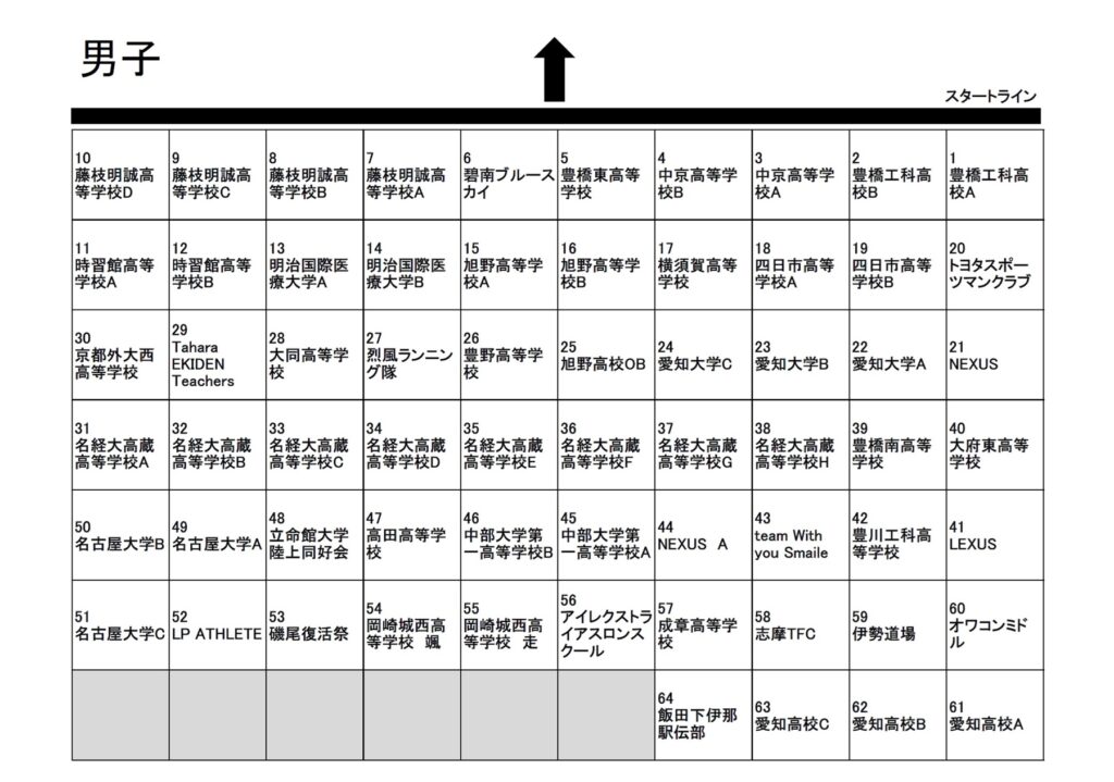 | 32 | 名経大高蔵高等学校B | 64 | 飯田下伊那駅伝部 |