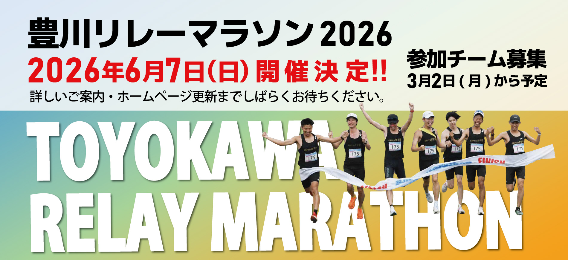2025-06-03 / 最終更新日時 : 2026-01-26 toyokawa_relaymarathon お知らせ お礼:豊川リレーマラソン2025は無事に終了いたしました 豊川リレーマラソン2025が、無事に終了いたしました。天気にも恵まれ、昨年以上に活気に満ちた大会となりました。”タスキを通して繋がる絆”の通り、この大会がチームメンバーの皆様の特別な思いになれば幸いです。 ご参加いただい […]